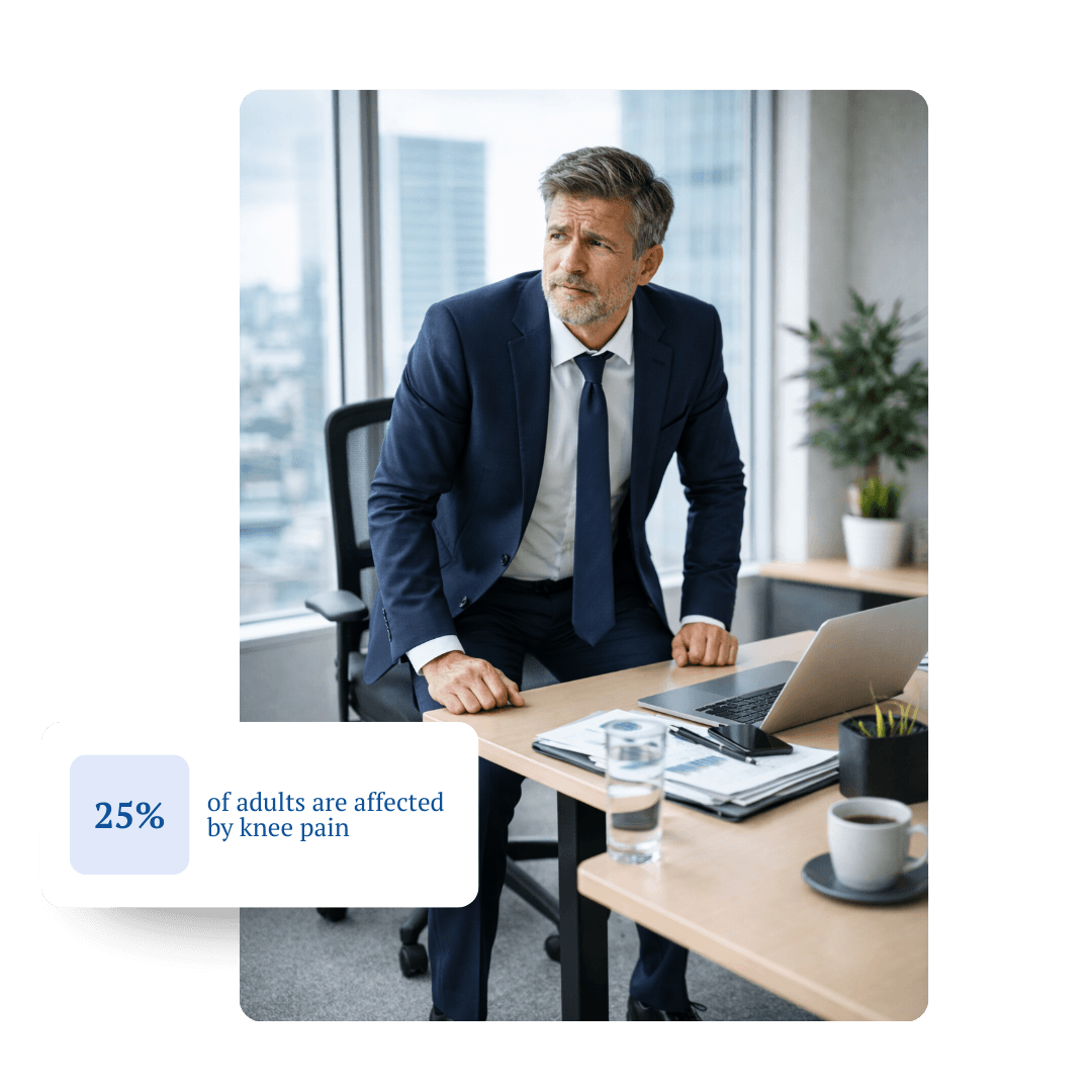 Men over 50 working corporate jobs spend years behind desks. Whether it’s spreadsheets, meetings or long commutes, these are all factors associated with a loss of confidence in their knees.